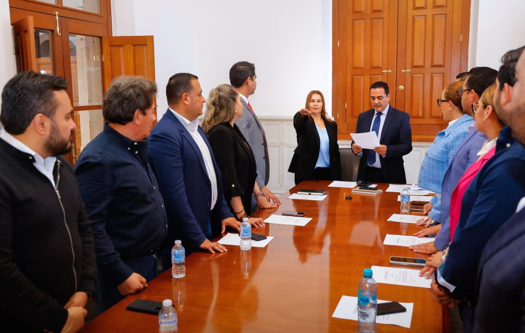 Toño Ochoa, acompañado por Bonifacio Herrera, secretario del Ayuntamiento, tomó protesta a la nueva Junta de Gobierno del DIF Municipal, integrada por Obed Jiménez, director de Finanzas; Juan Esteban Aguilar, titular de Salud Pública; Norma Miramontes, de Desarrollo Urbano; Giovanni Rosso, director del INDEHVAL; Obiel Arámbula, del IMEPLAN, e Ivette Esparza, contralora municipal. Todas y todos respaldaron la propuesta de Malena González para dirigir el DIF.