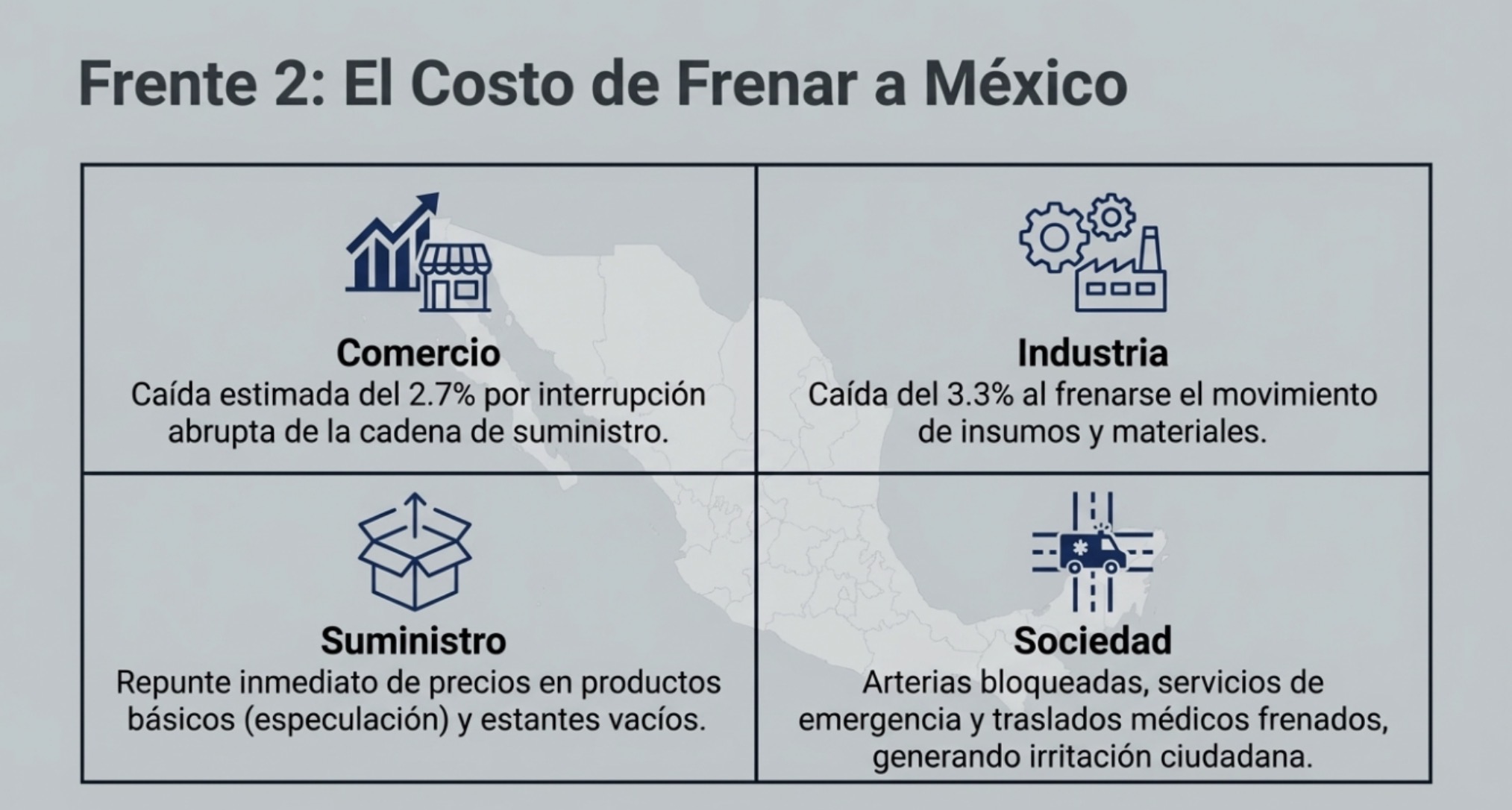 4. Estrategias de blindaje corporativo Ante las pérdidas millonarias y el riesgo de los operadores, las empresas de transporte han tenido que dejar de depender exclusivamente de la seguridad pública e invertir en prevención avanzada: